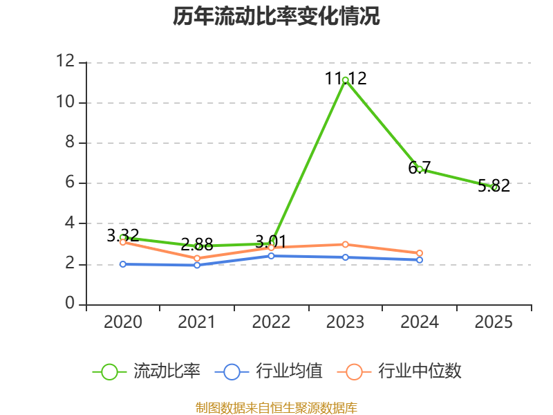 2025年,公司流动比率为5.82,速动比率为4.51。