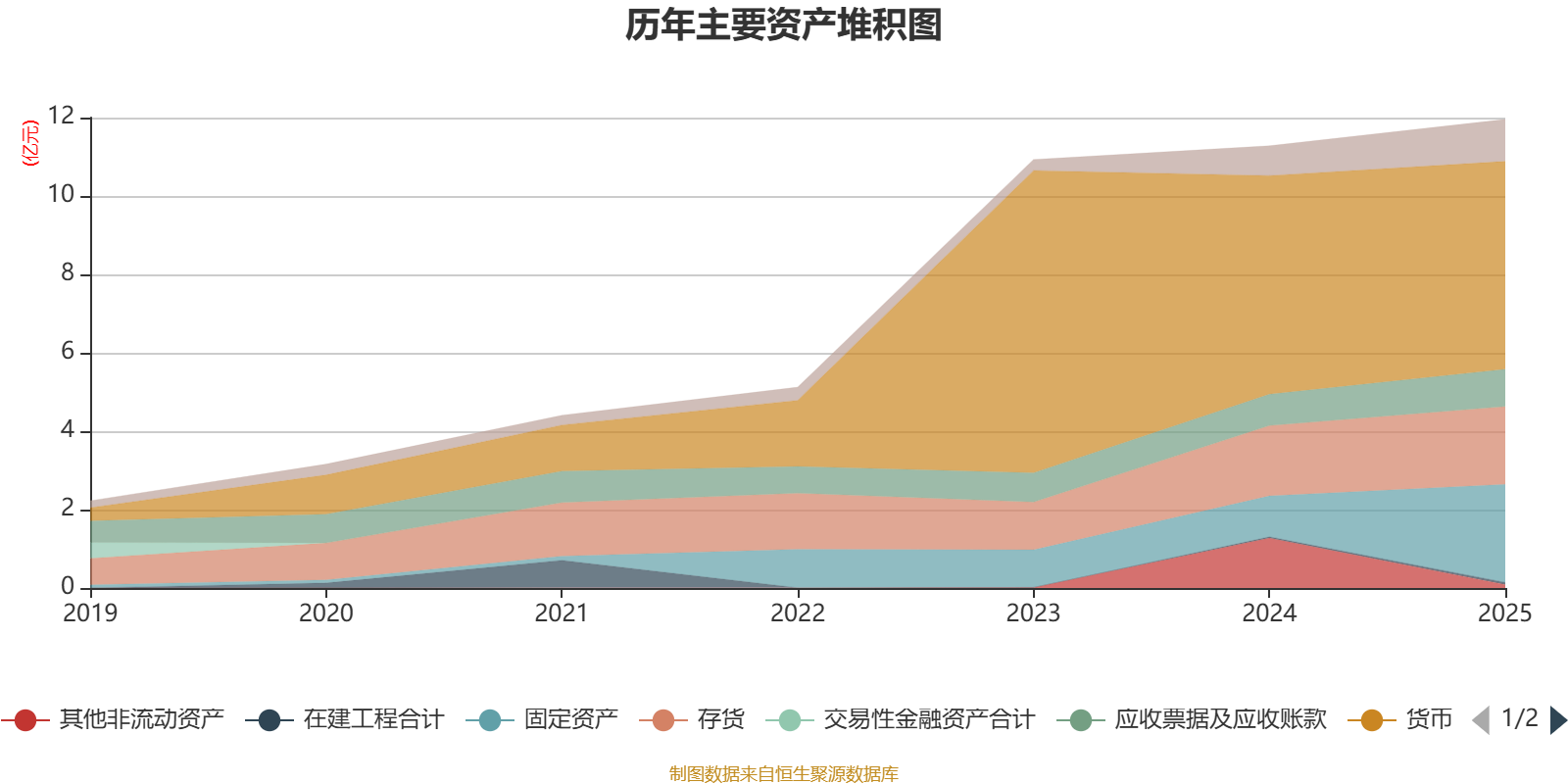 资产重大变化方面,截至2025年末,公司固定资产较上年末增加139.77%,占公司总资产比重上升11.68个百分点;其他非流动资产较上年末减少92.95%,占公司总资产比重下降10.56个百分点;货币资金较上年末减少4.89%,占公司总资产比重下降5.09个百分点;应收款项融资较上年末增加144.47%,占公司总资产比重上升2.26个百分点。