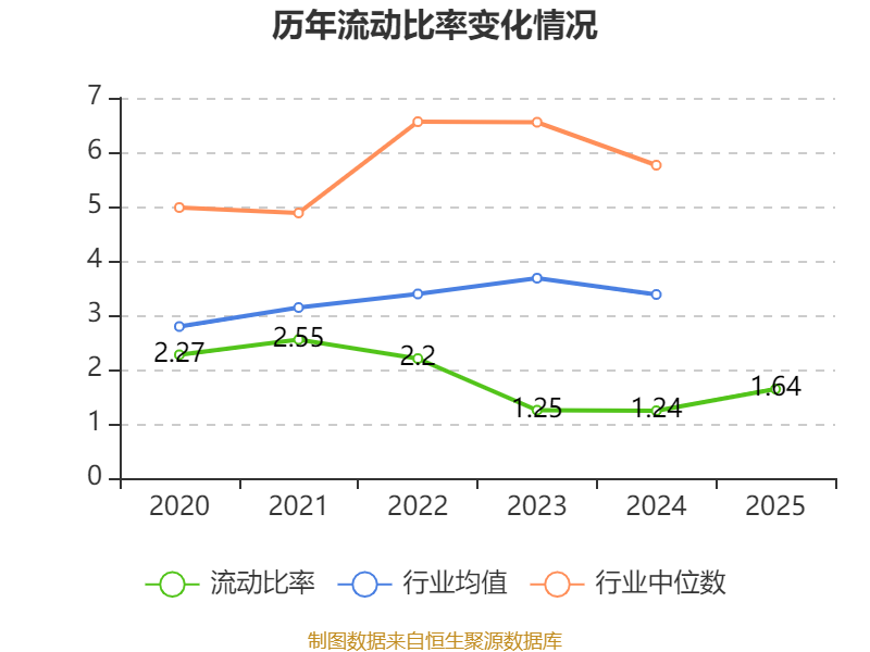 2025年,公司流动比率为1.64,速动比率为0.56。