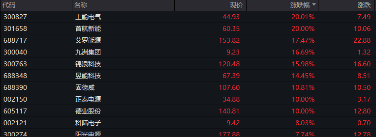 光伏概念股爆发,上能电气、首航新能20cm涨停,九洲集团、艾罗能源、锦浪科技涨逾15%,昱能科技涨逾14%。有市场消息称,特斯拉计划从中国采购总价29亿美元(约合200亿元人民币)的光伏制造设备。