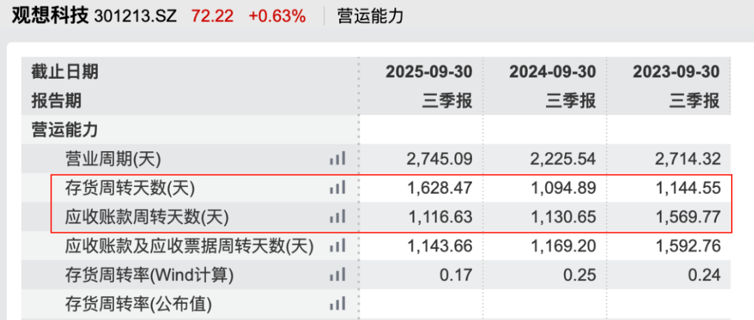 数据显示,2025年前三季度公司存货周转天数达到1628天,应收账款周转天数达到1117天,较往年同期进一步延长。