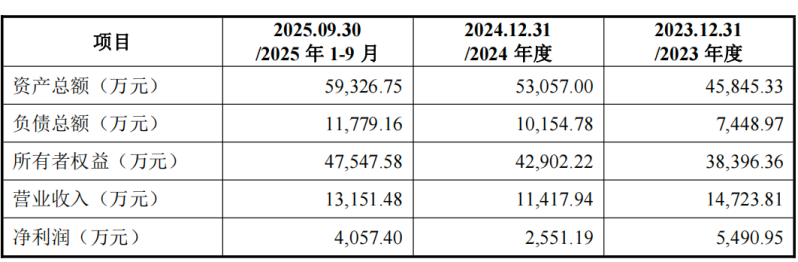 公告显示,辽晶电子2023年、2024年及2025年前三季度营业收入分别约为1.47亿元、1.14亿元和1.32亿元;同期净利润分别为5490.95万元、2551.19万元和4057.4万元。