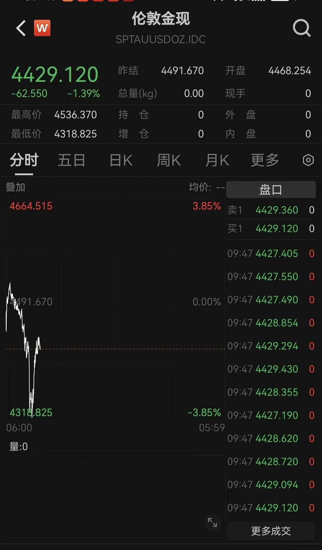 现货黄金一度跌破4320美元关口