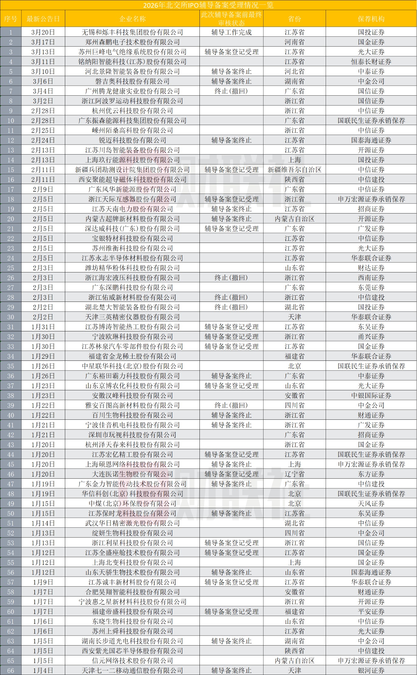 数据一:66家北交所IPO辅导备案受理,一半为二次申报
