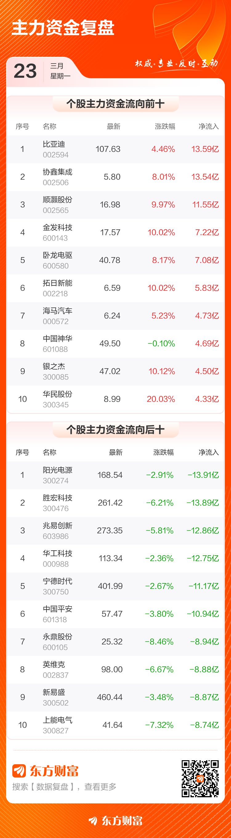 主力净买入个股中,比亚迪排名第一,主力净买入13.59亿元;协鑫集成排名第二,主力净买入13.54亿元。