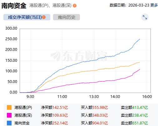 截至目前,南向资金净买入额达250亿港元。