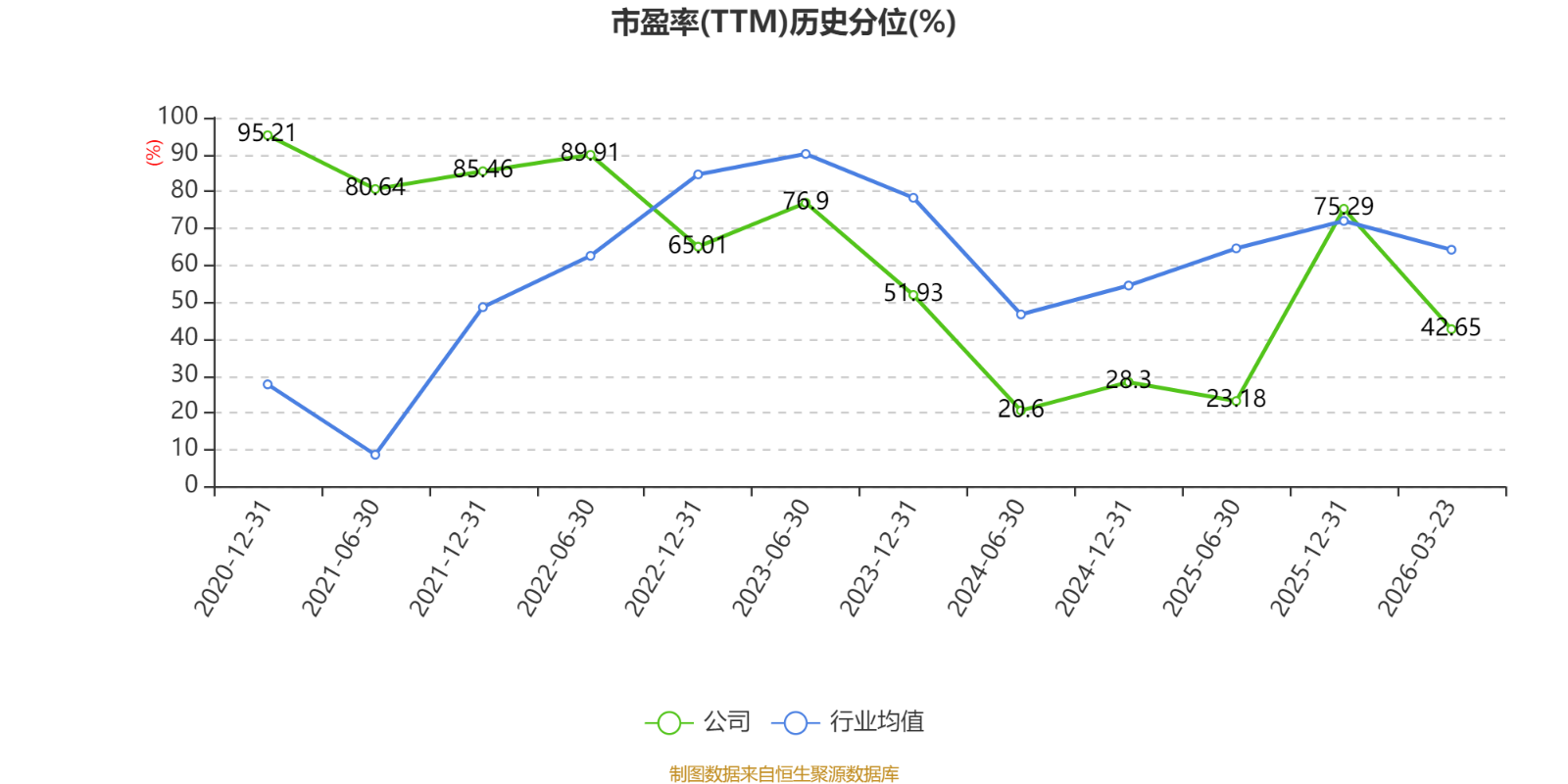市盈率、市净率为负时,不显示当期分位数,会导致折线图中断。