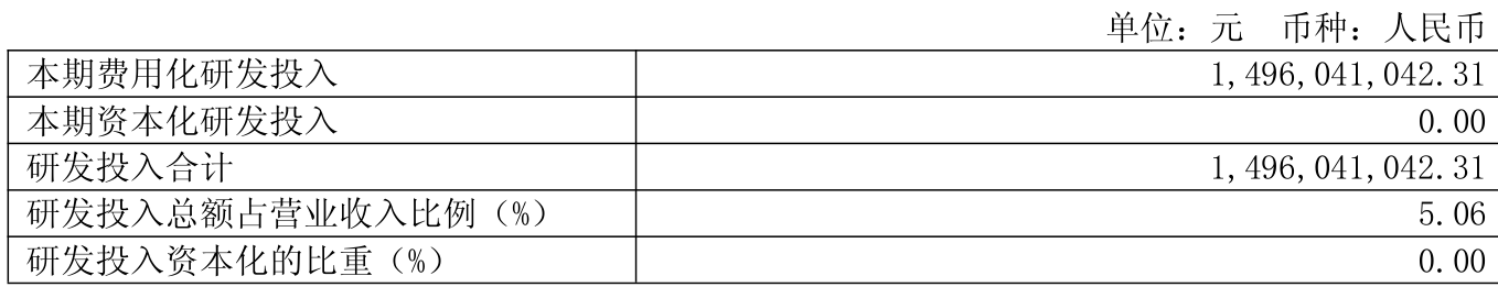 2025年全年,公司研发投入金额为14.96亿元,同比增长22.2%;研发投入占营业收入比例为5.06%,相比上年同期上升0.46个百分点。此外,公司全年研发投入资本化率为0。