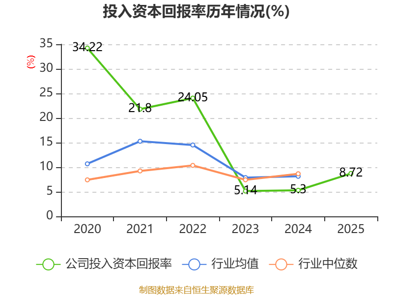 数据显示,2025年公司加权平均净资产收益率为9.6%,较上年同期上升3.77个百分点。公司2025年投入资本回报率为8.72%,较上年同期上升3.42个百分点。