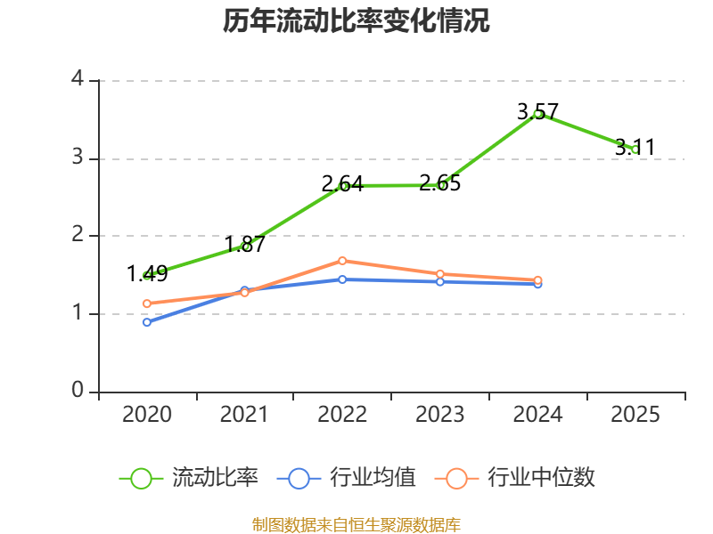 2025年,公司流动比率为3.11,速动比率为3.08。