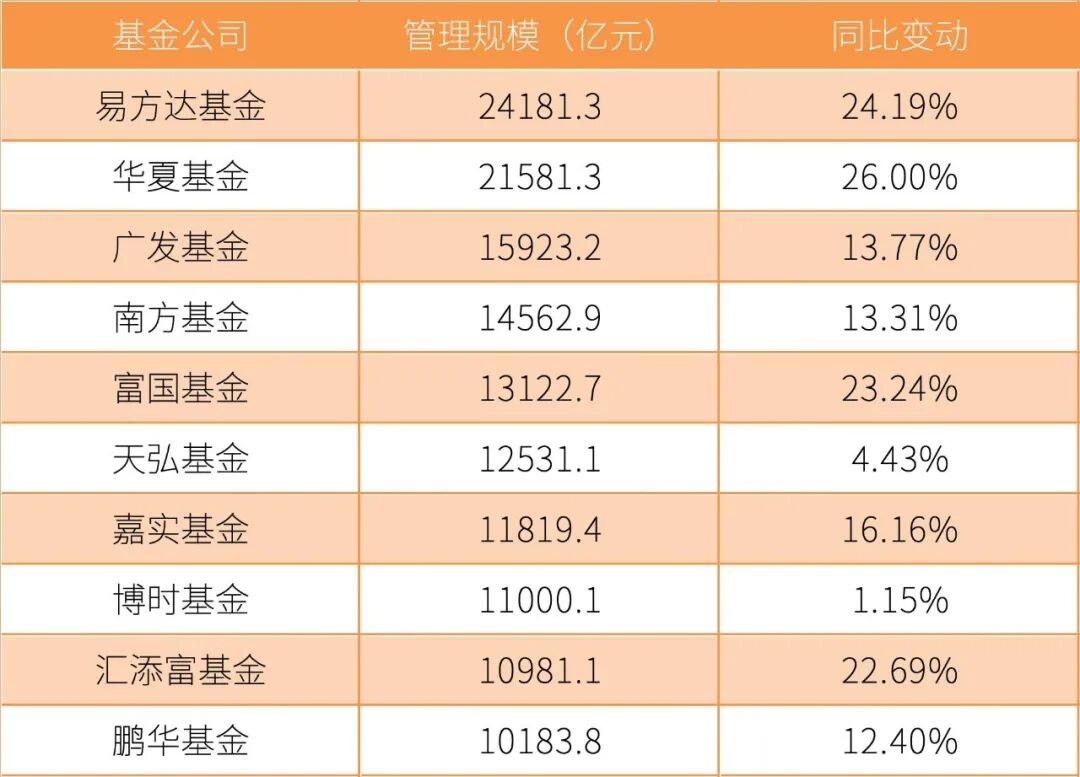 规模最大的10家基金公司