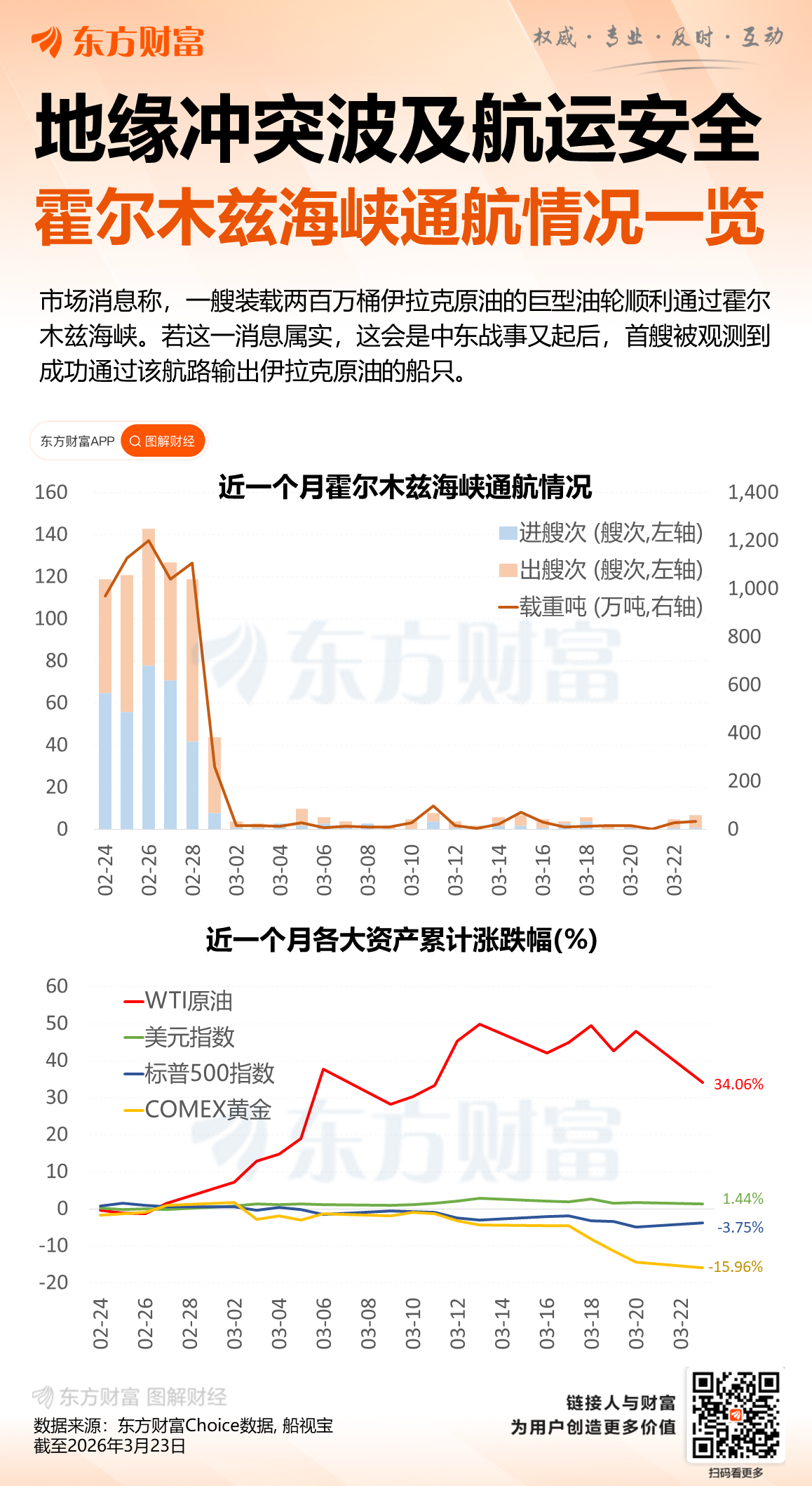 自冲突爆发后只有少数油轮通过该海峡,因此任何通航的迹象都备受市场关注。随着美以伊战争进入第四周,牵涉全球五分之一石油贸易的航路持续处于停摆状态,已经造成“石油市场历史上最大规模供应中断”。