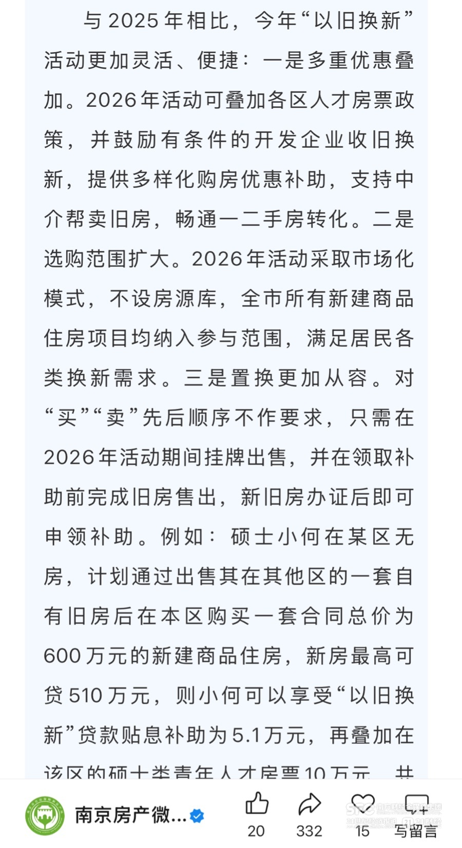 3月20日,南京市发布《关于稳定房地产市场的政策措施》(简称“宁六条”),其中明确提出对“卖旧买新”的购房人给予贷款总金额1%的贴息补助,全市贴息总资金限额1亿元,采取“先申领先得”的机制。继2025年后,今年重点城市继续将房贷贴息纳入稳楼市工具箱。