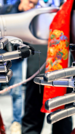 L20工业级灵巧手展示穿针技巧,郭博昊/摄