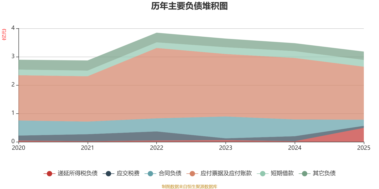 负债重大变化方面,截至2025年末,公司应付票据及应付账款较上年末减少13.89%,占公司总资产比重下降1.36个百分点;递延所得税负债较上年末增加2454.07%,占公司总资产比重上升1.13个百分点;合同负债较上年末减少63.09%,占公司总资产比重下降1.07个百分点;应交税费较上年末减少60.18%,占公司总资产比重下降0.31个百分点。