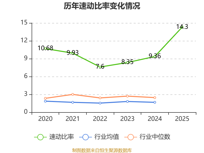 2025年,公司流动比率为14.73,速动比率为14.3。