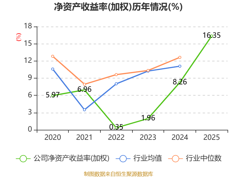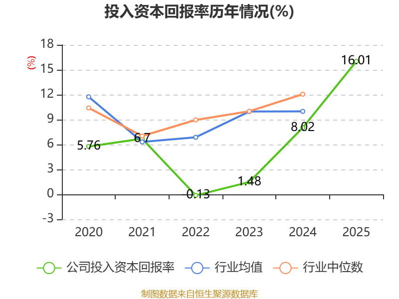 数据显示,2025年公司加权平均净资产收益率为16.35%,较上年同期上升8.09个百分点。公司2025年投入资本回报率为16.01%,较上年同期上升7.99个百分点。