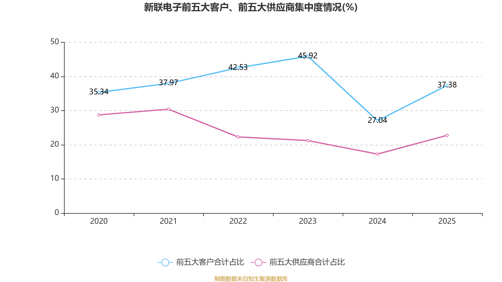 中证智能财讯新联电子(002546)3月25日披露2025年年度报告。2025年,公司实现营业总收入6.88亿元,同比下降10.23%;归母净利润5.78亿元,同比增长116.86%;扣非净利润1.34亿元,同比增长0.05%;经营活动产生的现金流量净额为1.26亿元,同比下降49.19%;报告期内,新联电子基本每股收益为0.69元,加权平均净资产收益率为16.35%。公司2025年度分配预案为:拟向全体股东每10股派现1.2元(含税)。