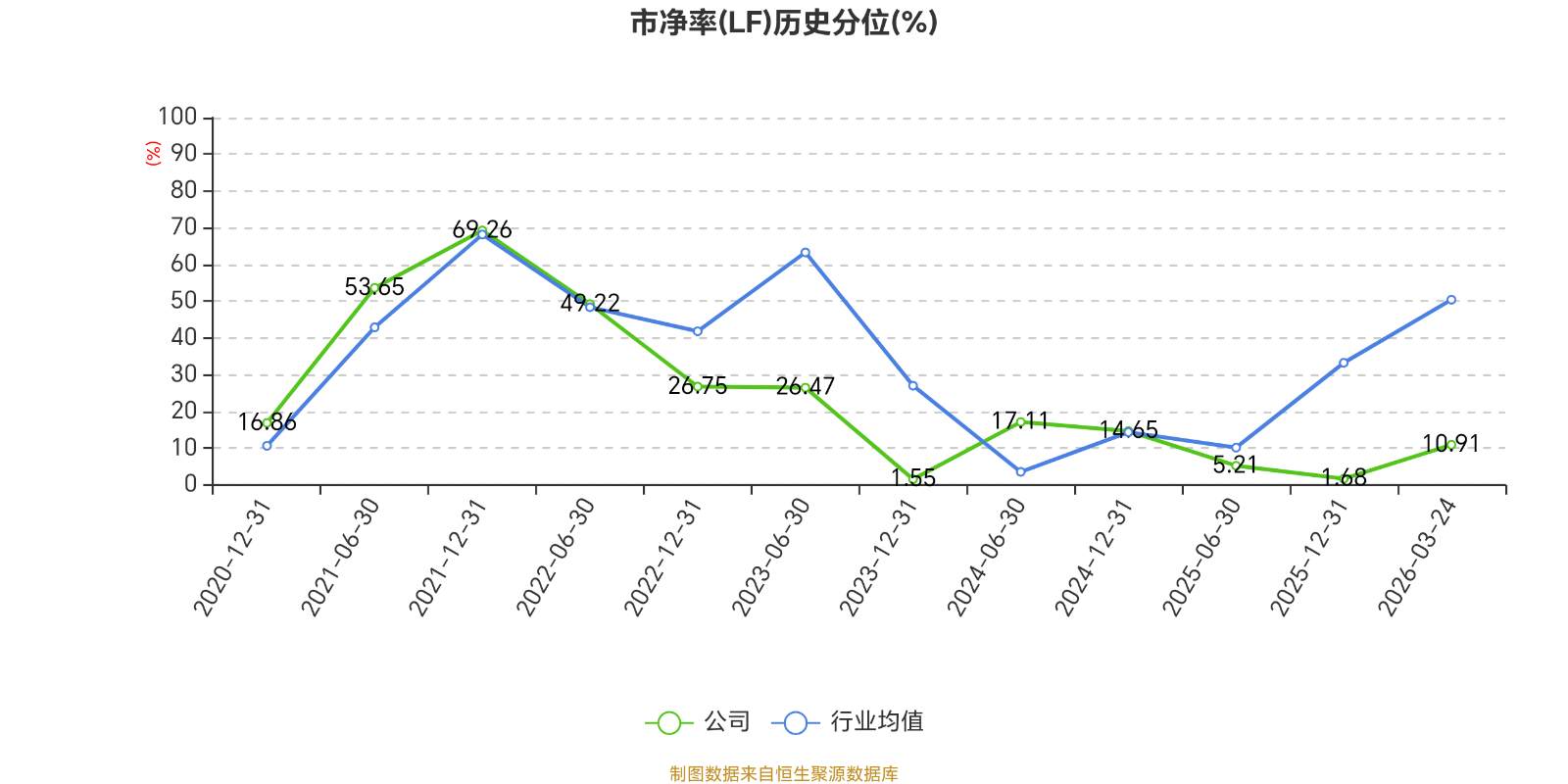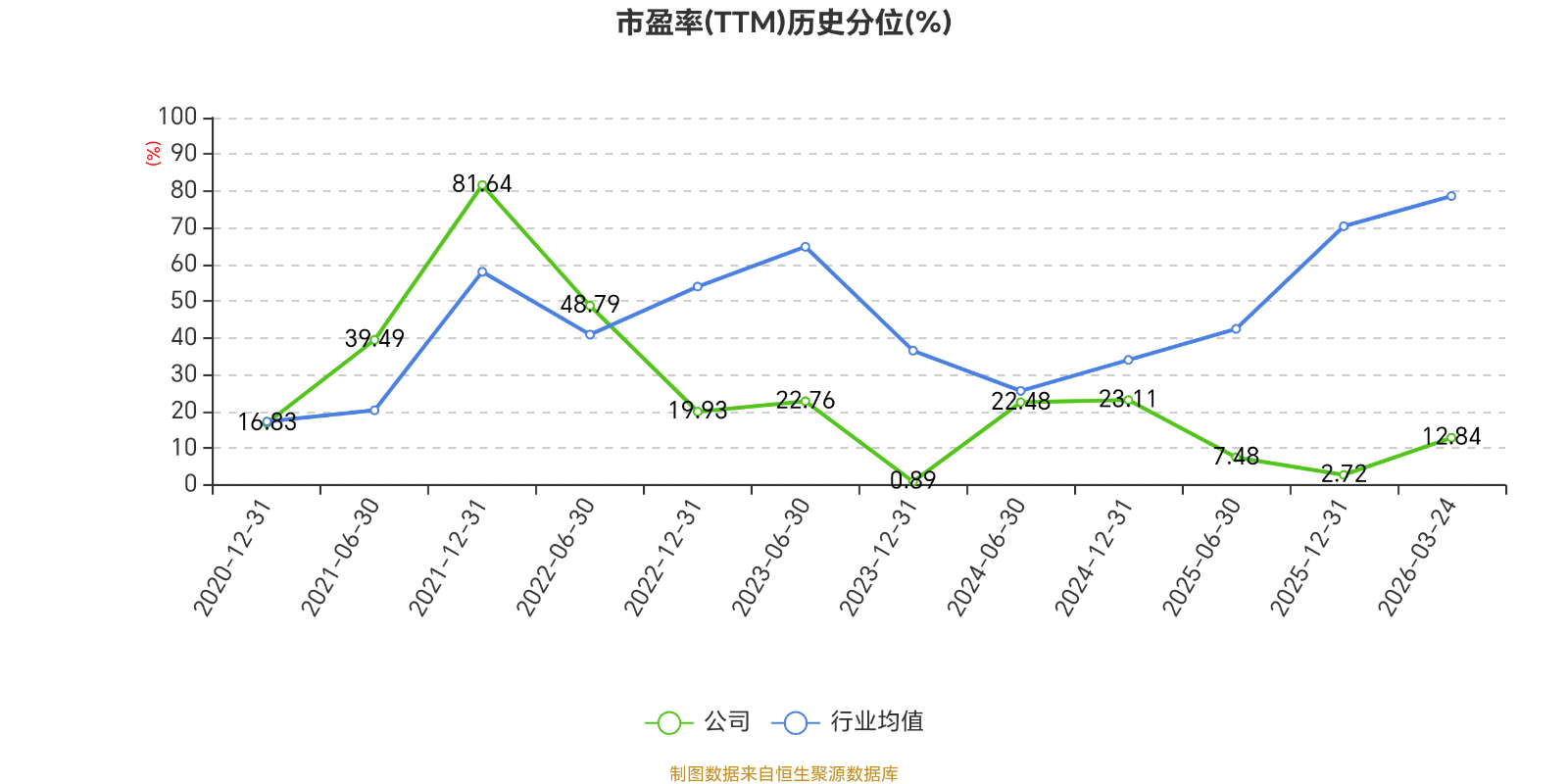 市盈率、市净率为负时,不显示当期分位数,会导致折线图中断。