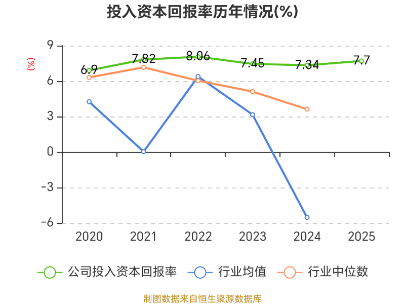 数据显示,2025年公司加权平均净资产收益率为9.93%,较上年同期上升0.43个百分点。公司2025年投入资本回报率为7.7%,较上年同期上升0.36个百分点。