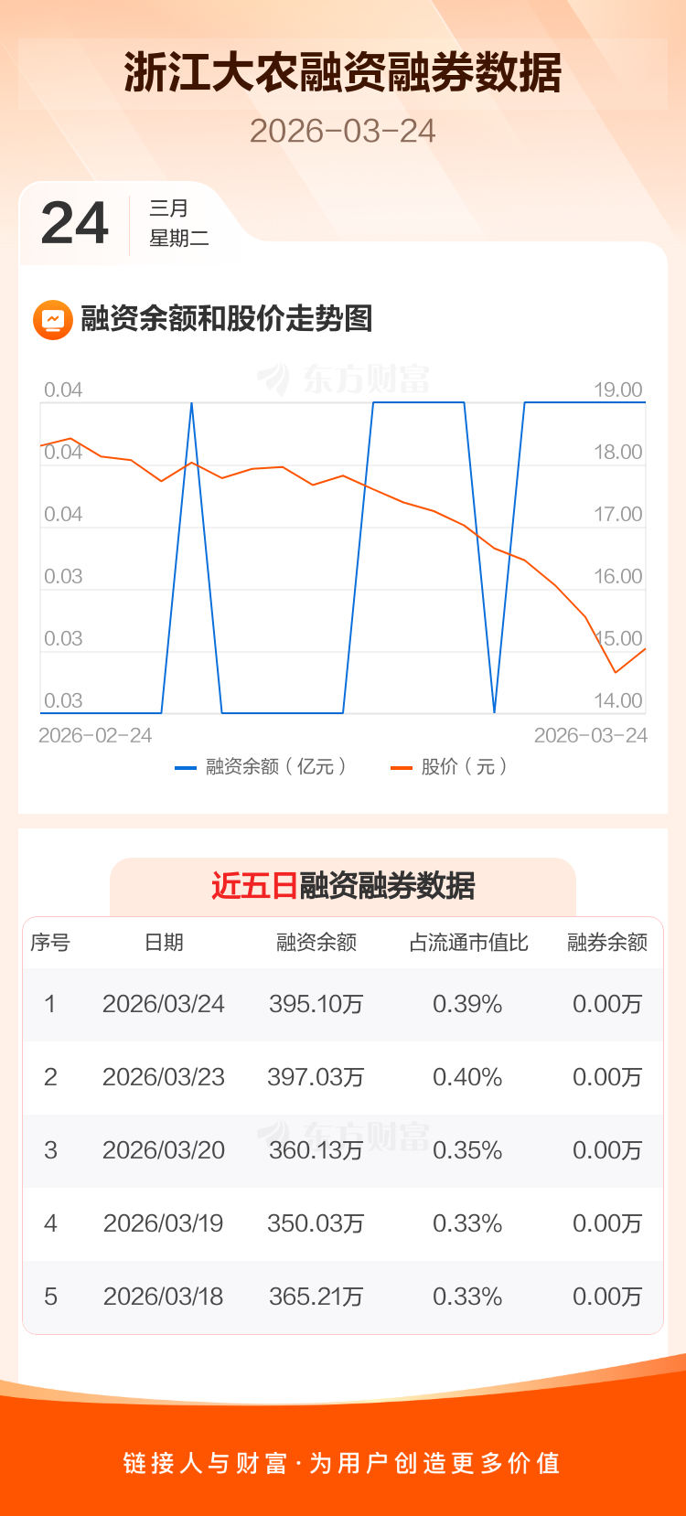 交易所最新数据显示,浙江大农于2026年3月24日获融资买入99.66万元,融资偿还101.59万元,当日融资净偿还1.93万元。目前,该股融资余额395.10万,占流通市值比例为0.39%。