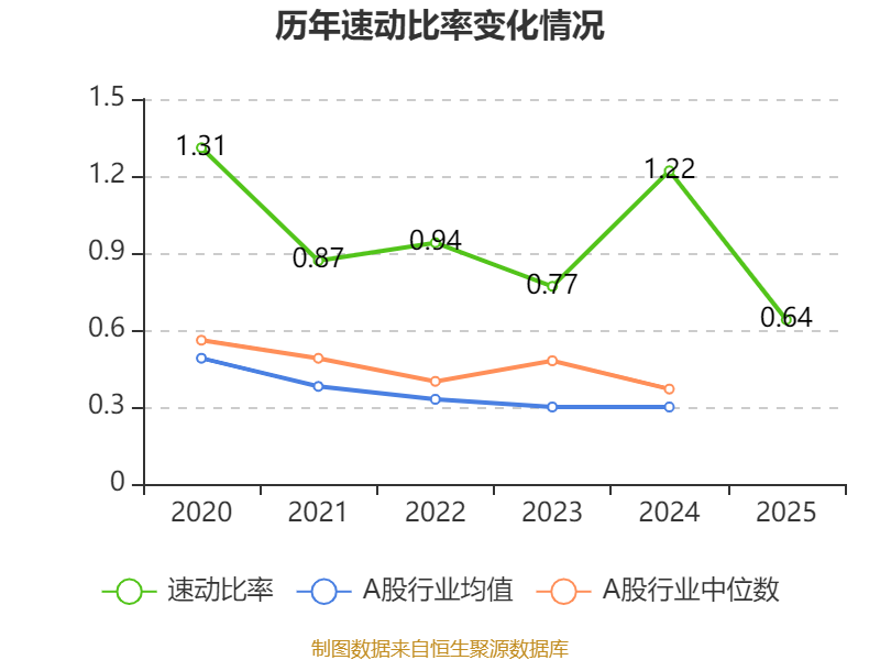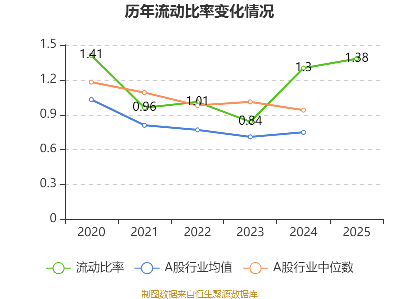 2025年,公司流动比率为1.38,速动比率为0.64。