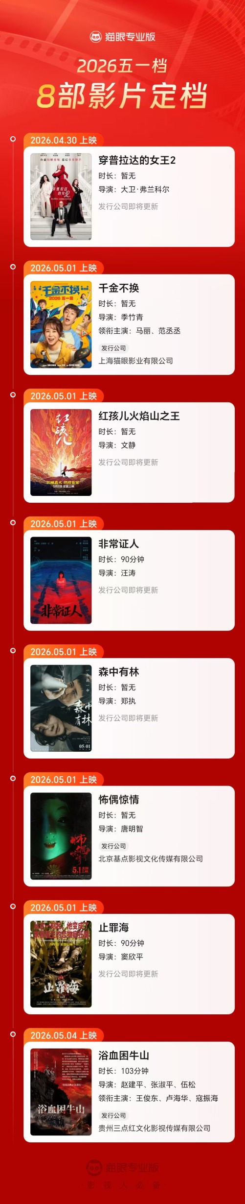 上证报中国证券网讯3月25日,电影《森中有林》官宣定档5月1日上映。截至当前,已有8部影片定档2026年五一档上映。