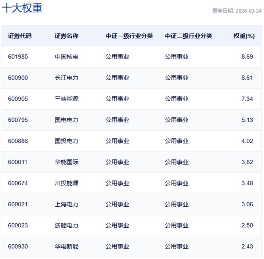 中证绿色电力指数主要权重股