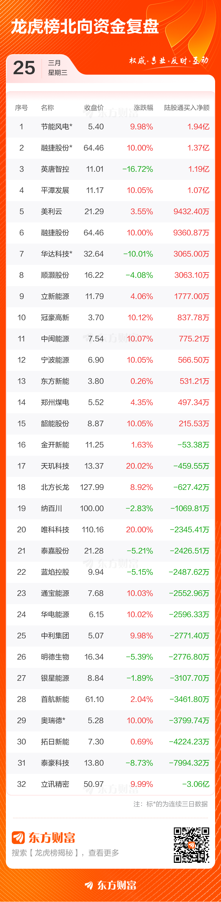 3月25日共有59只个股上榜龙虎榜,总上榜成交额227.40亿元。上榜个股中净买入额最高的是立讯精密,金额为10.69亿元。