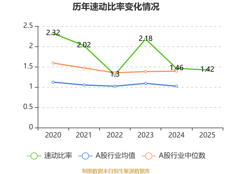 2025年,公司流动比率为1.79,速动比率为1.42。