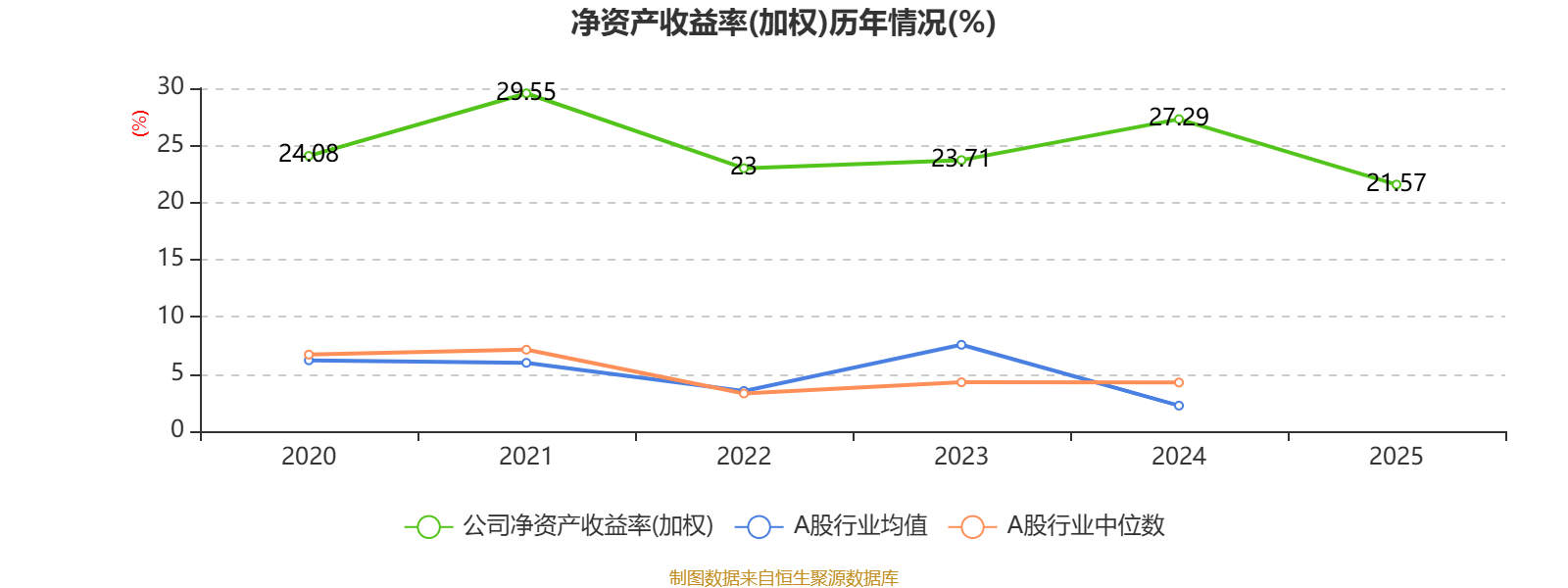数据显示,2025年公司平均净资产收益率为21.57%,较上年同期下降5.72个百分点。