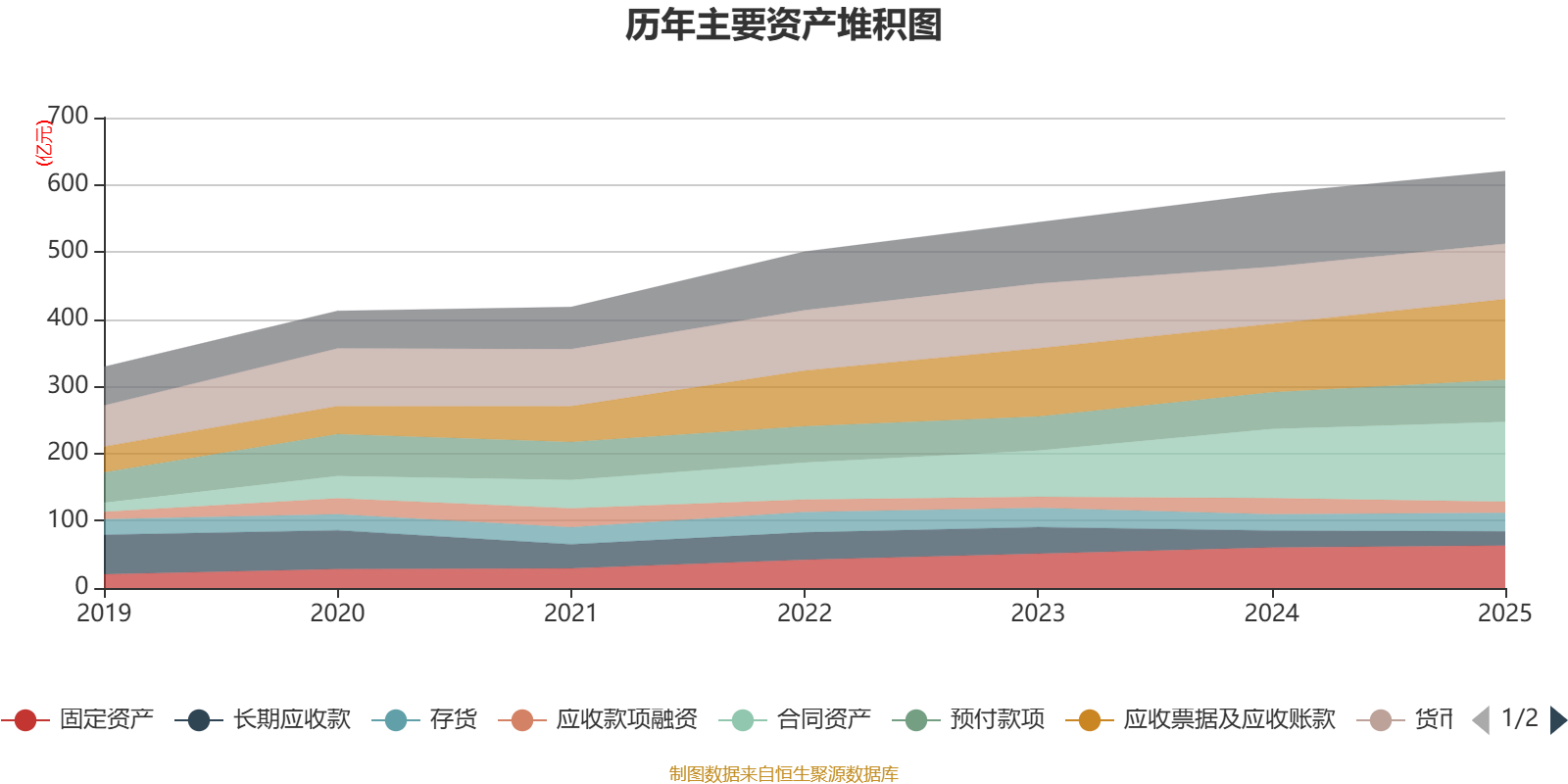 资产重大变化方面,截至2025年末,公司应收票据及应收账款较上年末增加17.59%,占公司总资产比重上升1.97个百分点;合同资产较上年末增加15.31%,占公司总资产比重上升1.61个百分点;应收款项融资较上年末减少30.21%,占公司总资产比重下降1.37个百分点;货币资金较上年末减少2.61%,占公司总资产比重下降1.12个百分点。