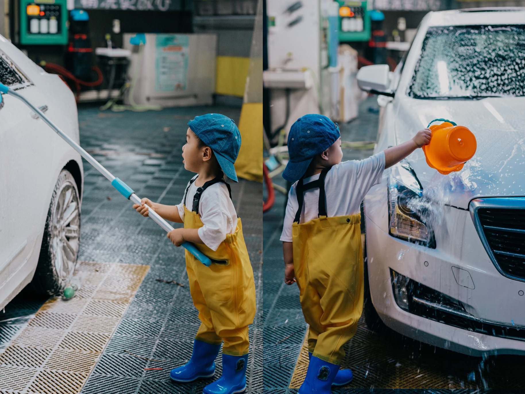 亲子一起洗车成为“体验经济”一部分。受访者供图