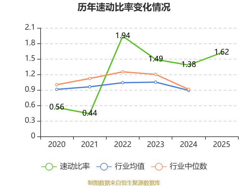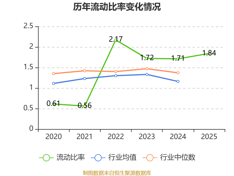 2025年,公司流动比率为1.84,速动比率为1.62。