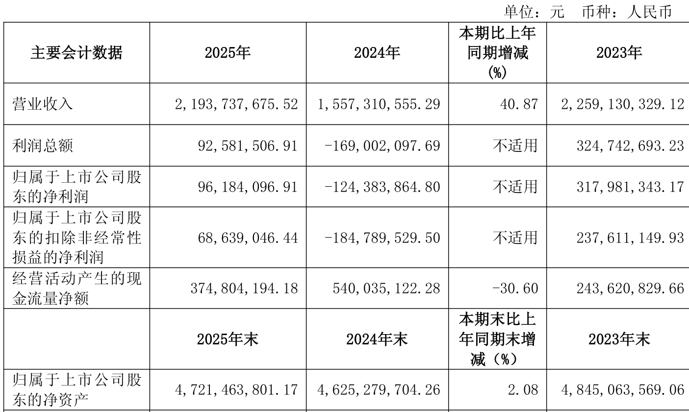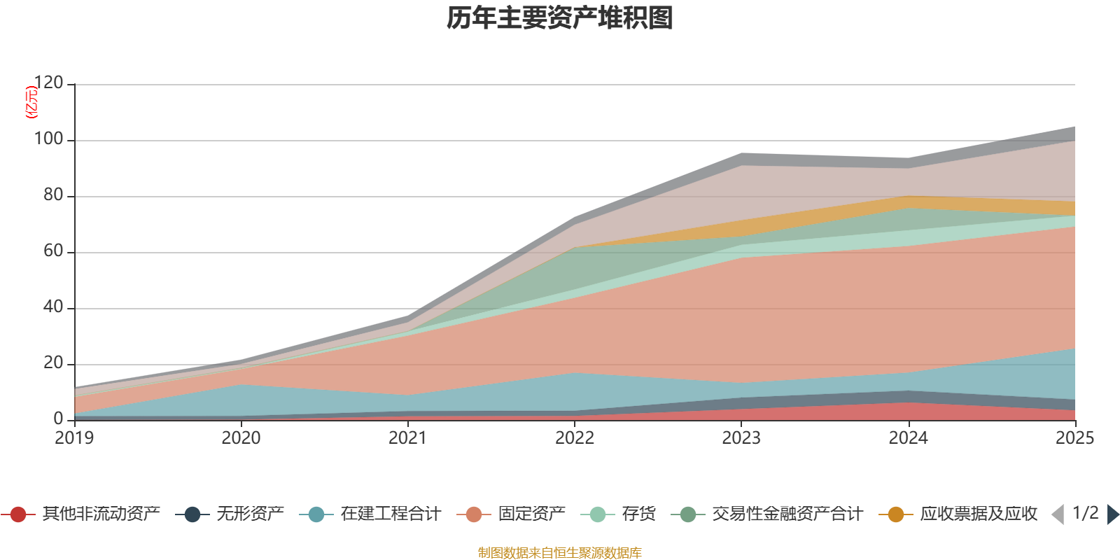 资产重大变化方面,截至2025年末,公司在建工程合计较上年末增加185.21%,占公司总资产比重上升10.56个百分点;货币资金较上年末增加125.06%,占公司总资产比重上升10.4个百分点;交易性金融资产合计较上年末减少100%,占公司总资产比重下降8.46个百分点;固定资产较上年末减少3.73%,占公司总资产比重下降6.79个百分点。