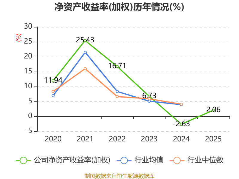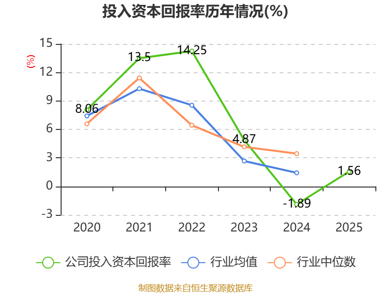 数据显示,2025年公司加权平均净资产收益率为2.06%,较上年同期上升4.69个百分点。公司2025年投入资本回报率为1.56%,较上年同期上升3.45个百分点。