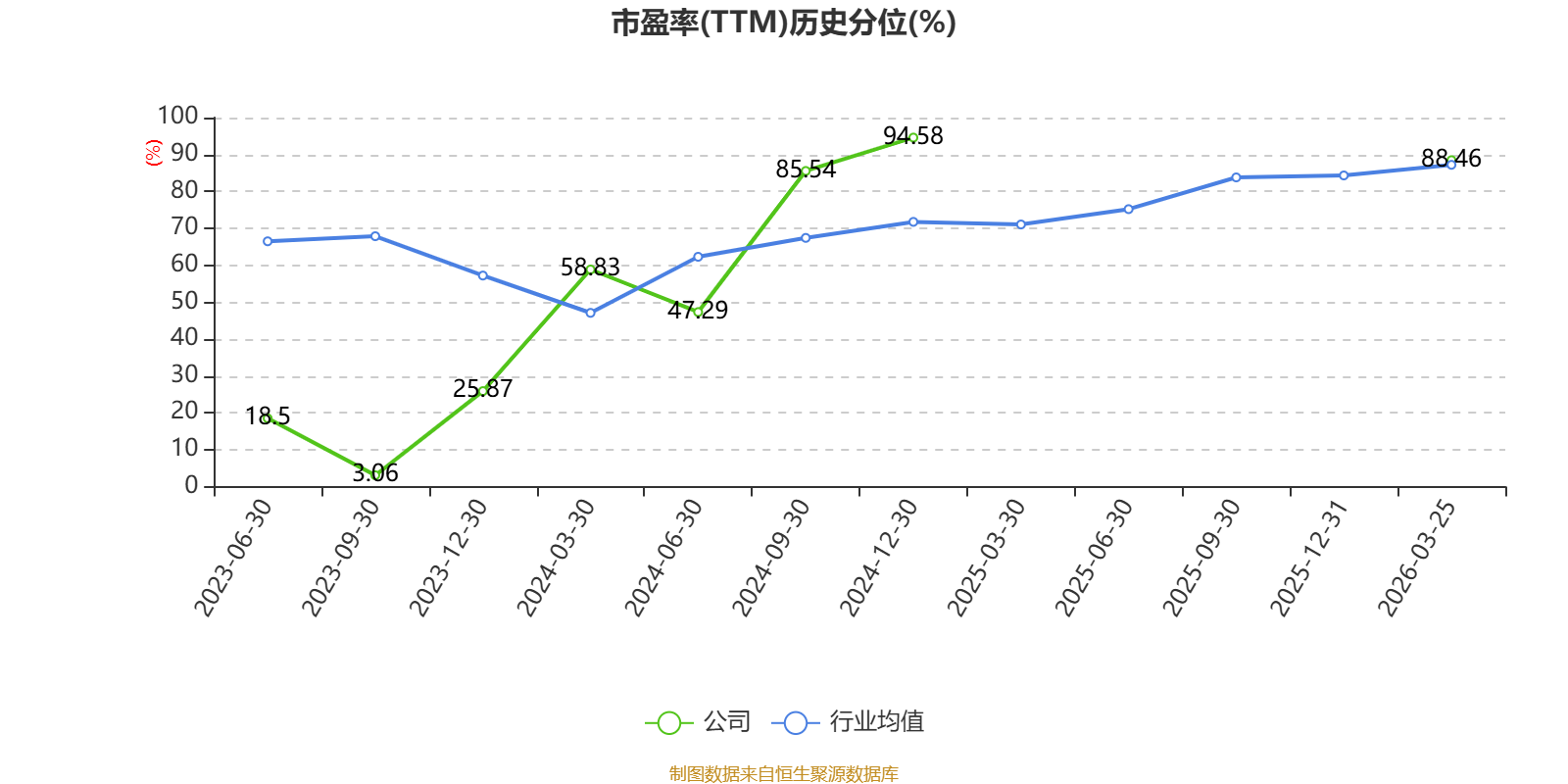 市盈率、市净率为负时,不显示当期分位数,会导致折线图中断。