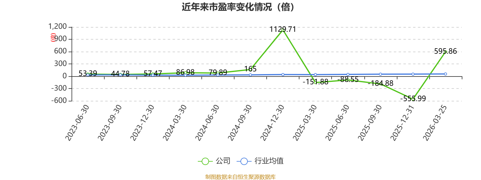 以3月25日收盘价计算,中复神鹰目前市盈率(TTM)约为595.86倍,市净率(LF)约12.14倍,市销率(TTM)约26.13倍。
