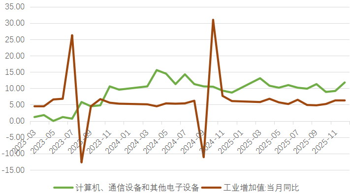 图为计算机、通信和其他电子设备工业与工业增加值增速变化