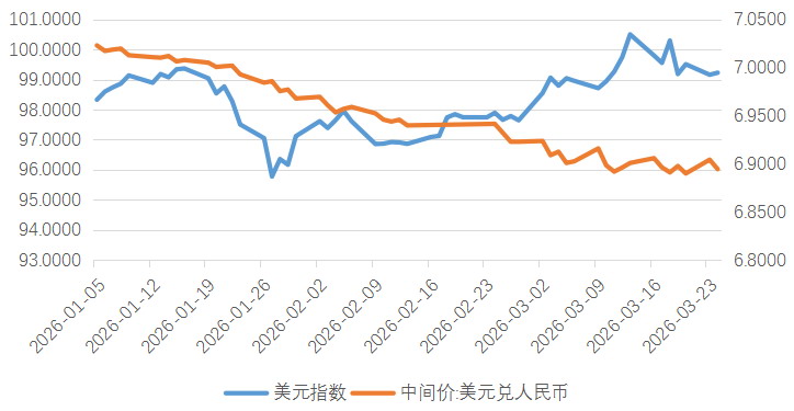 海外方面,美联储3月议息会议符合预期,保持利率不变,暂停降息。地缘冲突升级驱动国际油价大幅上涨,霍尔木兹海峡是全球石油航运的“咽喉”,控制着全球20%的石油贸易与石油运输,若霍尔木兹海峡长时间不放开,则国际油价将居高不下,通胀预期偏强的背景下,市场推测美联储将推迟降息时点。短期来看,地缘冲突升级引发资金回流需求,对美元形成支撑,但2月美国失业率升至4.4%,新增非农就业录得-6000人,就业市场超预期走弱,同时消费者信心指数持续处于低位,居民消费动能放缓令美元走势面临压力。另外,就业疲软与消费承压叠加通胀居高不下,资金对美国滞胀风险的担忧不断强化。与此同时,本周美国提出协议,拟停火1个月,航运公司复航,中东局势出现缓和迹象,带动市场风险偏好回升、流动性环境改善。