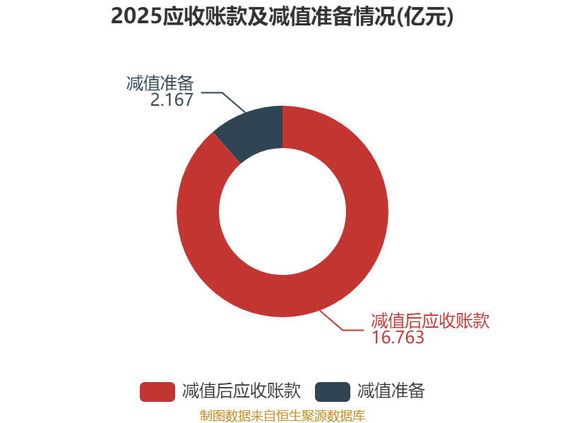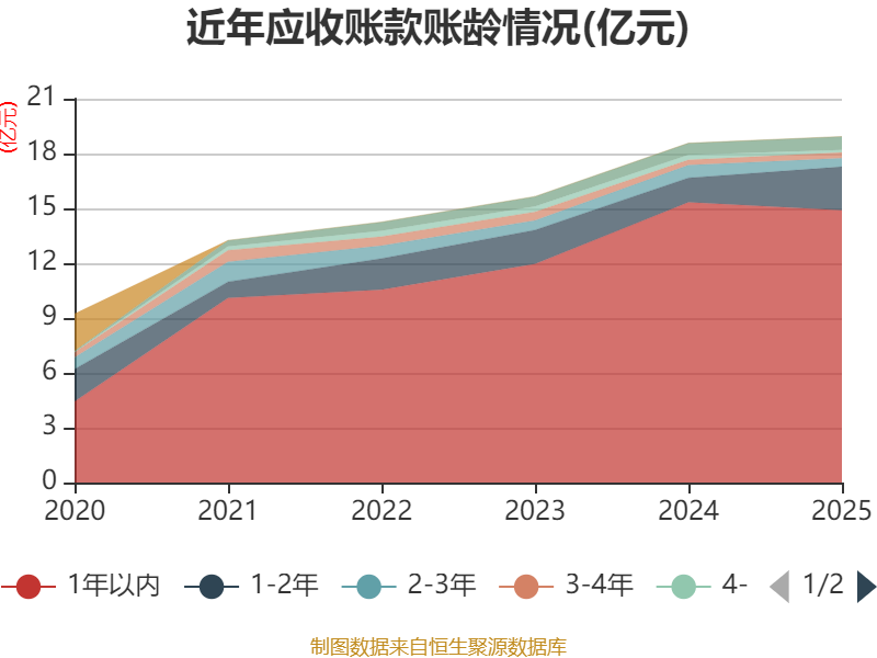 从应收账款账龄结构来看,截至2025年末,公司账龄在1年以内的应收账款余额为14.9亿元,较上年末下降4334.11万元,占应收账款总额比例为78.68%,较上年末下降3.87个百分点。