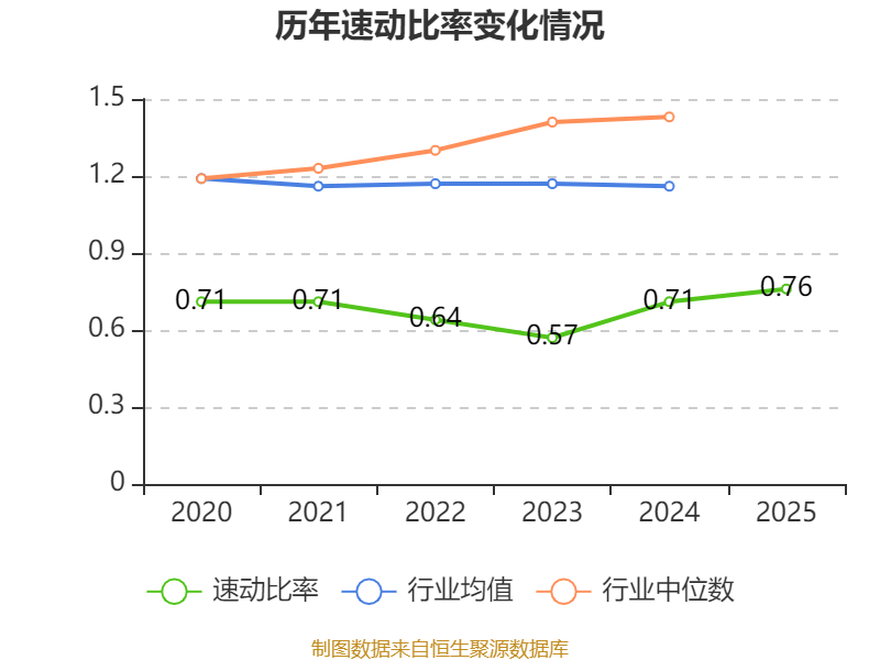 2025年,公司流动比率为1.21,速动比率为0.76。