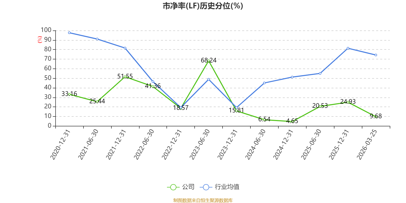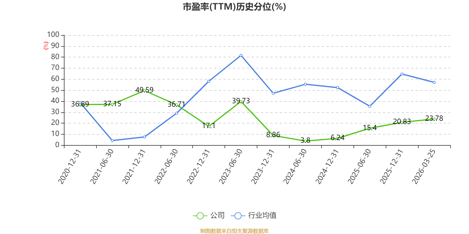 市盈率、市净率为负时,不显示当期分位数,会导致折线图中断。
