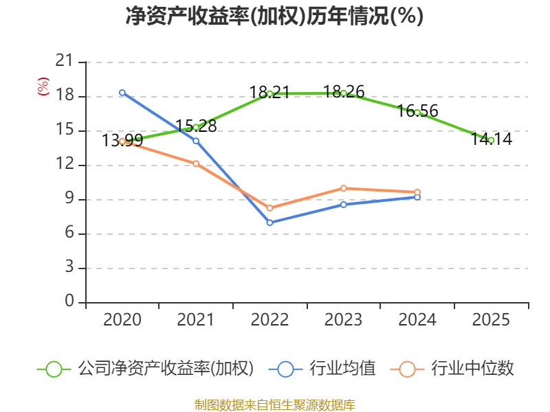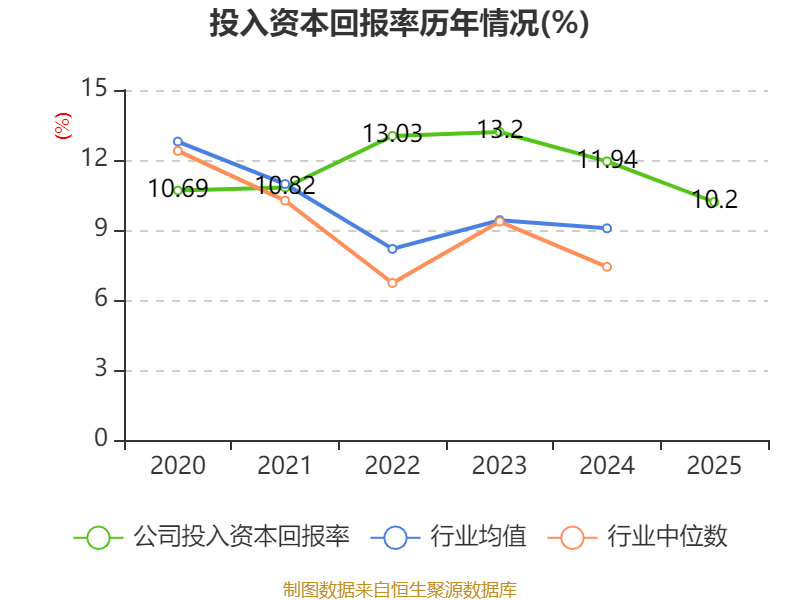数据显示,2025年公司加权平均净资产收益率为14.14%,较上年同期下降2.42个百分点。公司2025年投入资本回报率为10.2%,较上年同期下降1.74个百分点。