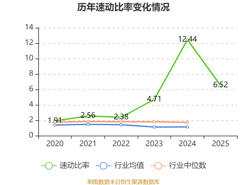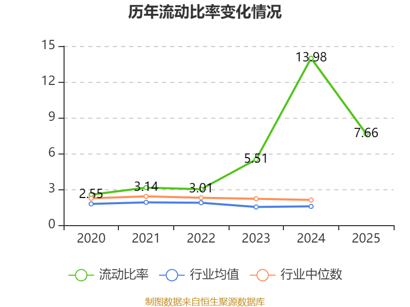 2025年,公司流动比率为7.66,速动比率为6.52。