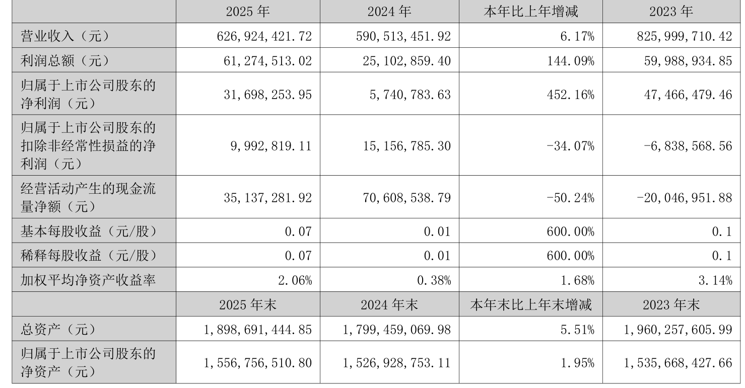 中证智能财讯凯恩股份(002012)3月26日披露2025年年度报告。2025年,公司实现营业总收入6.27亿元,同比增长6.17%;归母净利润3169.83万元,同比增长452.16%;扣非净利润999.28万元,同比下降34.07%;经营活动产生的现金流量净额为3513.73万元,同比下降50.24%;报告期内,凯恩股份基本每股收益为0.07元,加权平均净资产收益率为2.06%。公司2025年度分配预案为:拟向全体股东每10股派现0.21元(含税)。
