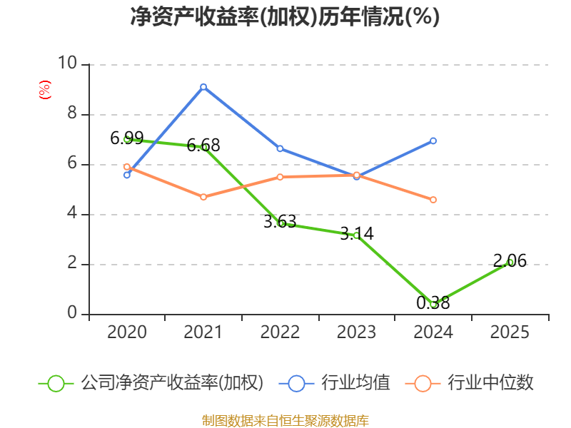 数据显示,2025年公司加权平均净资产收益率为2.06%,较上年同期上升1.68个百分点。公司2025年投入资本回报率为2.46%,较上年同期上升1.81个百分点。
