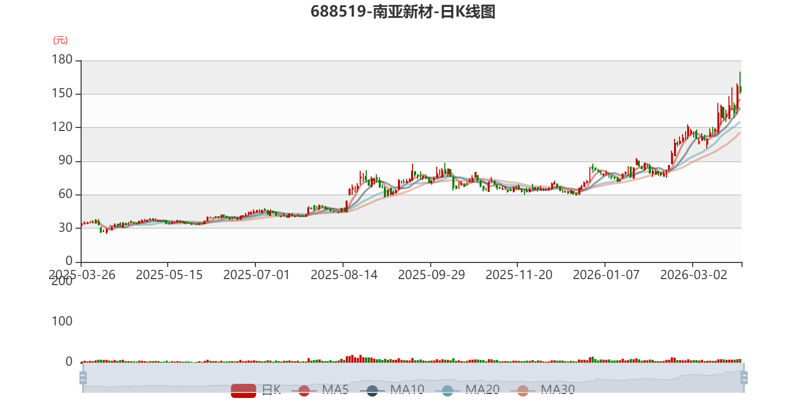 以3月25日收盘价计算,南亚新材目前市盈率(TTM)约为148.49倍,市净率(LF)约12.4倍,市销率(TTM)约6.83倍。