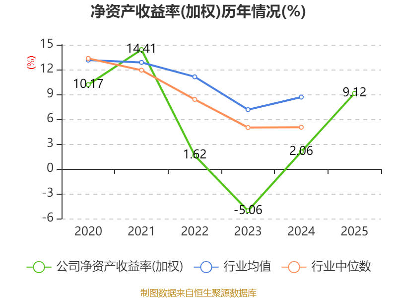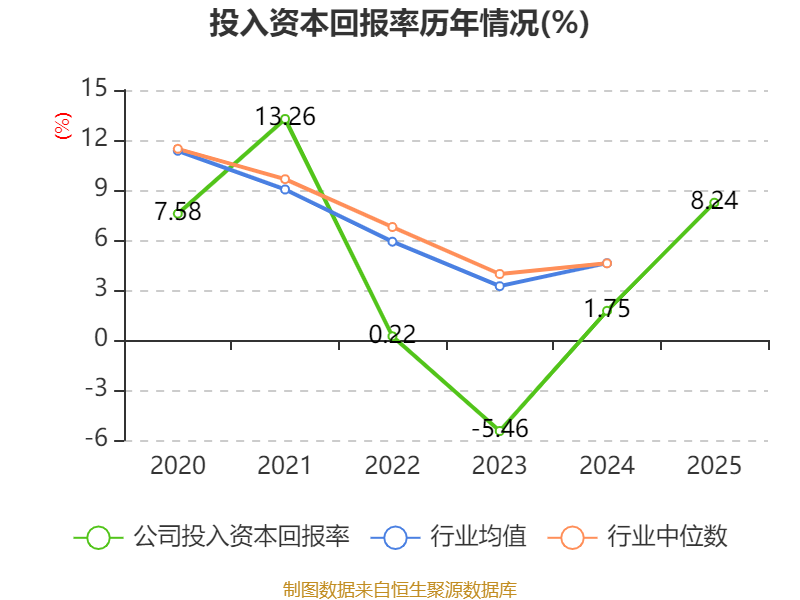 数据显示,2025年公司加权平均净资产收益率为9.12%,较上年同期上升7.06个百分点。公司2025年投入资本回报率为8.24%,较上年同期上升6.49个百分点。