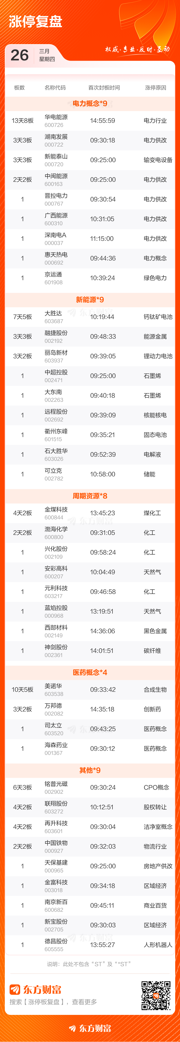 3月26日涨停复盘:51只股涨停 华电能源13天8板